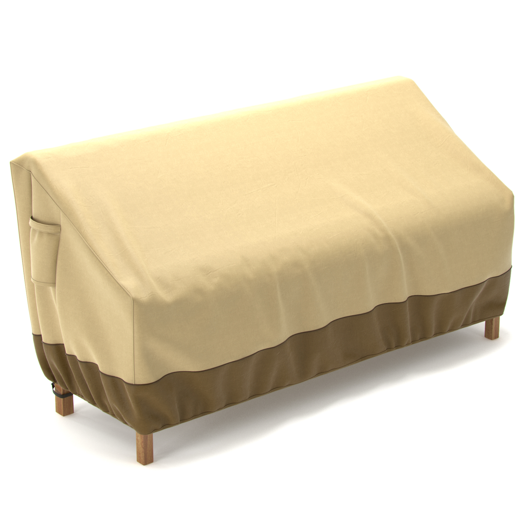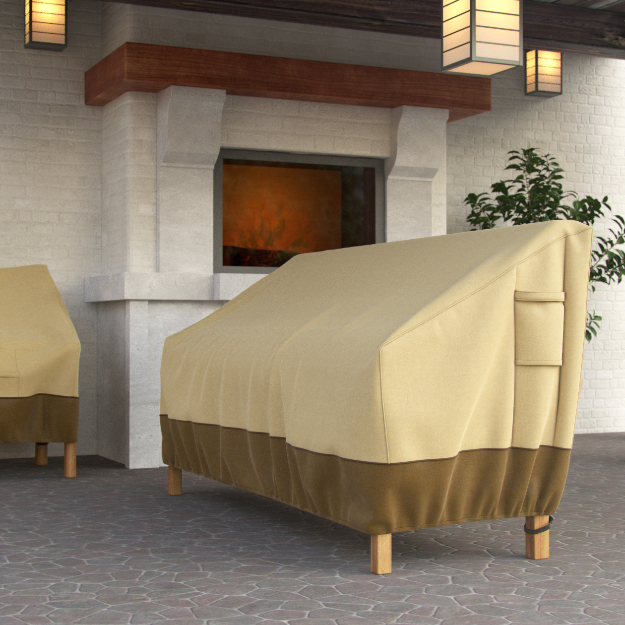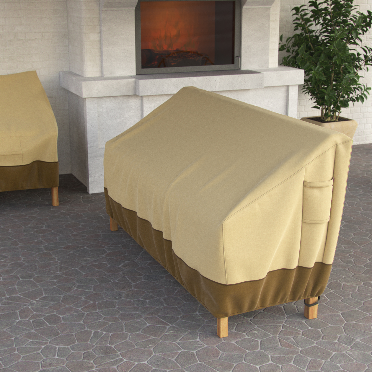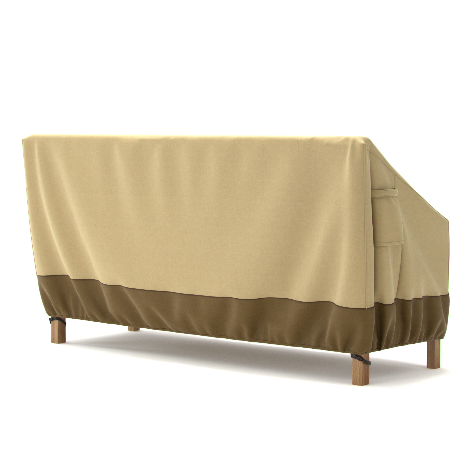 - EASY TO USE WITH ADJUSTABLE CORD LOCK: Adjustable belted hem with click-close straps provides patio sofa cover a customizable fit with exceptional security in the windiest conditions.Large padded handles shorten the time and effort needed when installing or removing this patio sofa cover.
