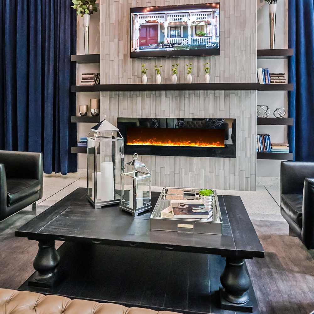The Erie, a beautifully designed electric wall mounted fireplace with a crystal effect, looks stunning anywhere you want intimate ambiance and warmth. The captivating crystals bring a touch of modern style to the fireplace. It offers 3 easily controllable settings of low heat, high heat or the flame effect only. The Erie effortlessly heats a 400 sq. ft. room, without the mess of wood fireplaces or the smell of gas fireplaces.