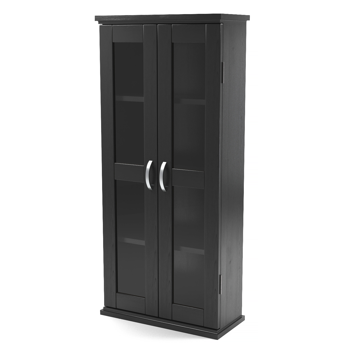 This black multi-functional media tower is the perfect storage unit to house DVDs, CDs, games, books, media and more. It’s contemporary design is simple, yet exceptionally functional. Features adjustable shelving crafted from high-grade MDF and durable laminate. This media tower will hold approximately 100 DVDs, Blu-ray discs or other media behind attractive double doors with tempered, safety glass panes.