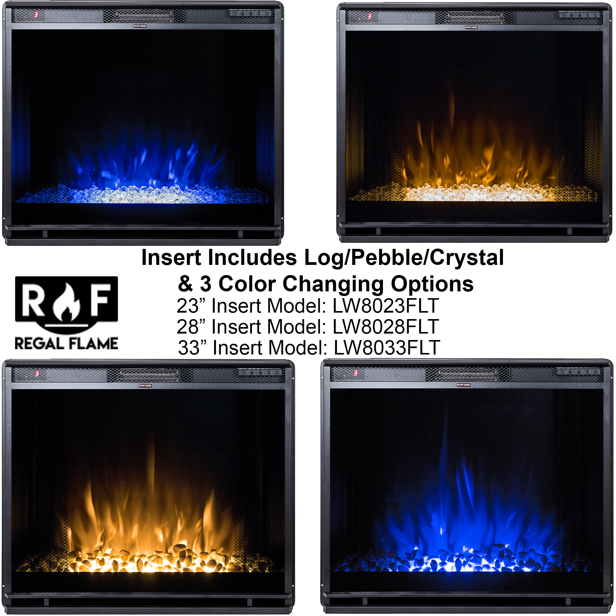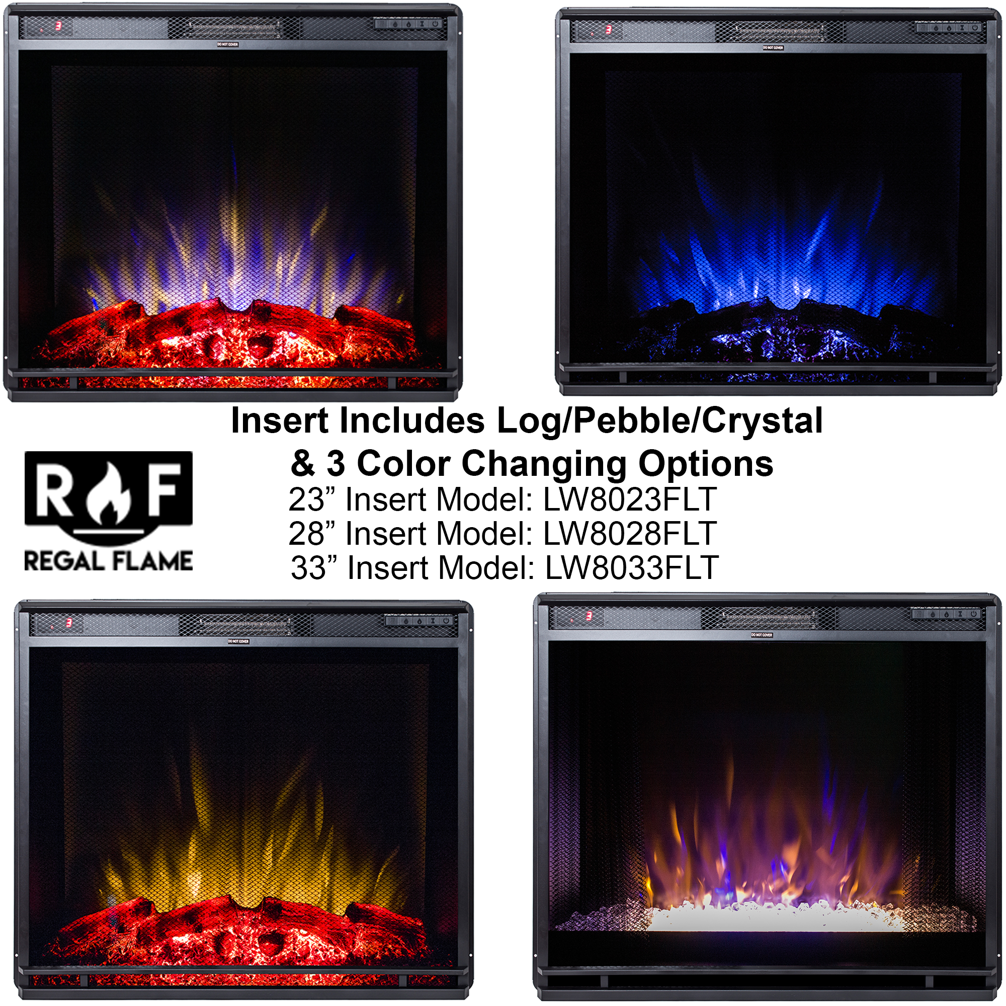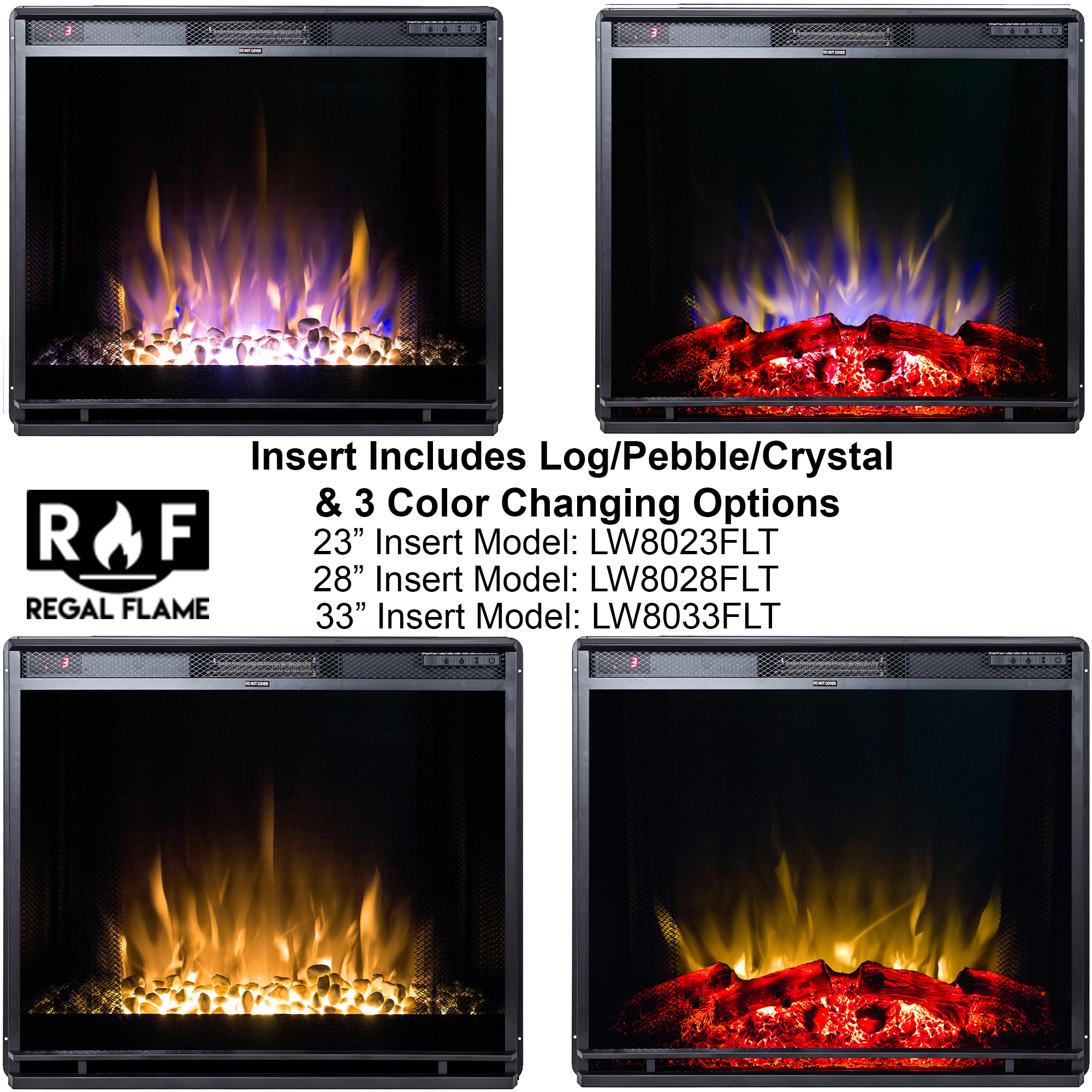 Regal Flame 23″ Flat Pebble, Crystal, Log Ventless Heater Electric Fireplace Insert, Black Frame – 3 Color Changing Settings