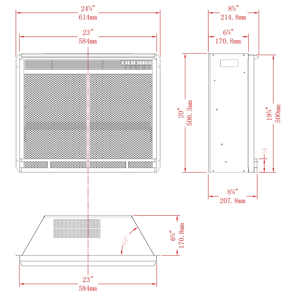 Smokeless Ventless Wall Recessed Built-in Electric Fireplace Space Heater, 3 settings of high, low, and no heat (only flame effect) – 1,500 Watts (400 sq. ft.)?Overall Dimensions: 24.5W x 8.5D x 20H Inches