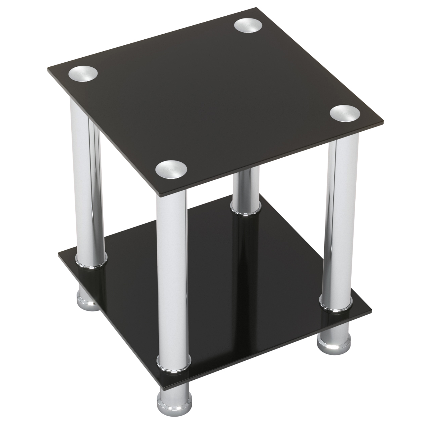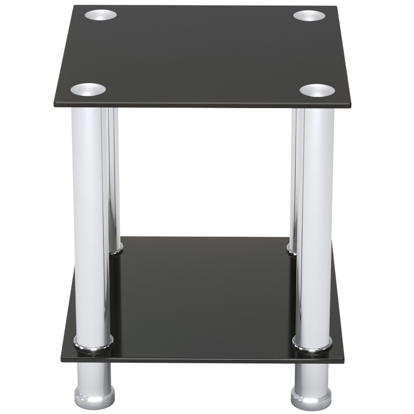 Ryan Rove Audrey End Table Sofa Table Night Table with Tempered Glass Shelves – Chrome Frame/Black Glass