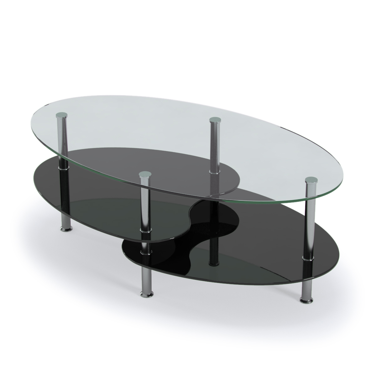 Ryan Rove Orion – Oval Two Tier Glass Coffee Table – Tables for Living Room, Kitchen, Bedroom and Office – Glass Shelves Under Desk Storage